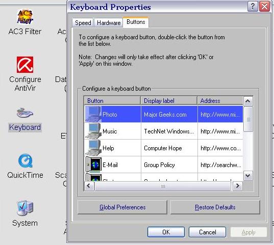 I personally use one from HP 's web site, but I installed about 15 of them before I found one I like. I guess what I am using is an applet because it adds the "button" tab into my keyboard properties. Then I can change the address to whatever as you can see the photo key is actually a web address. The pictures next to the keys are propaganda I tell you.