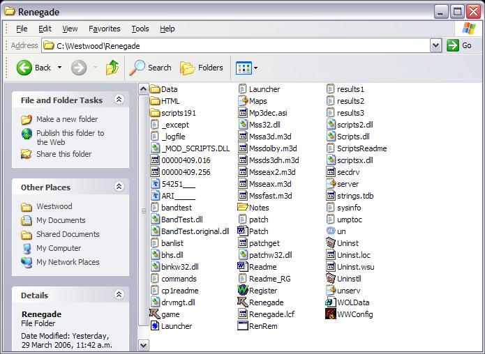 Also as I said.....i just reinstalled renegade and actually lost my data folder so nothing in there should be a problem.