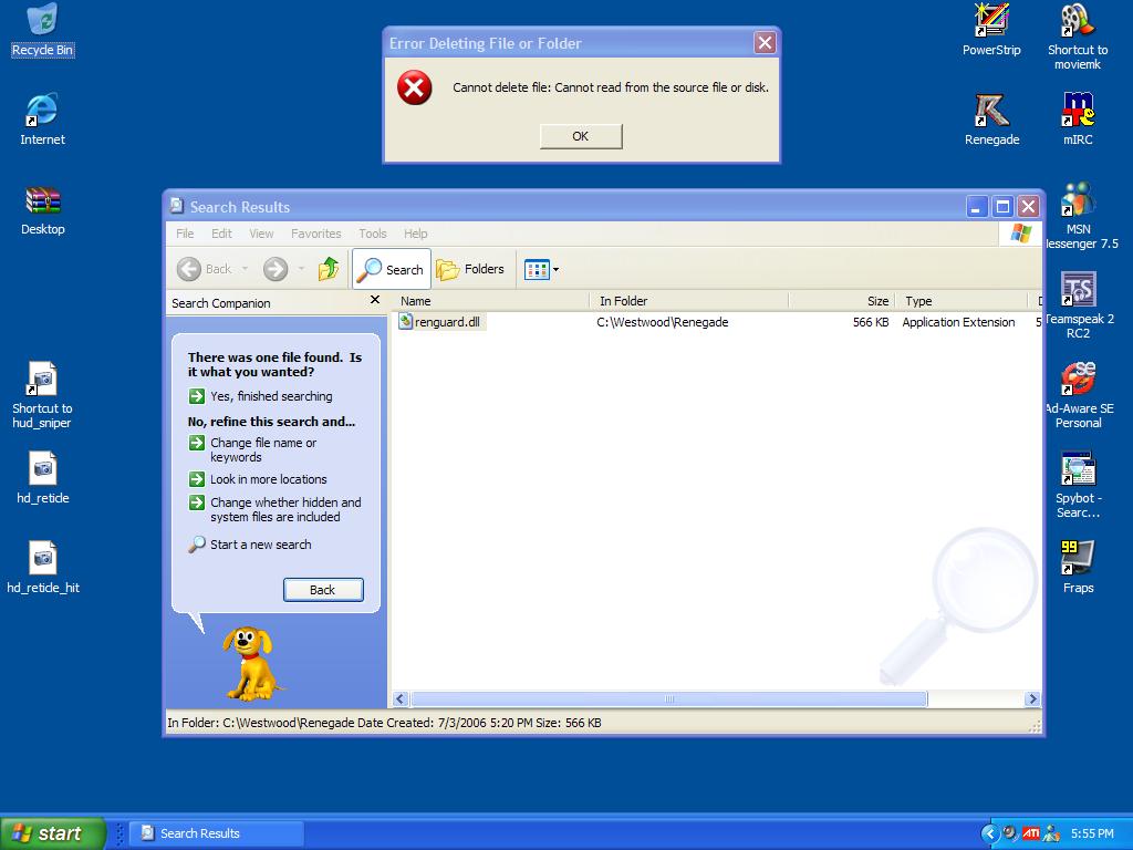 I think you misunderstood. What people mean when they say delete everything and start again is to run the uninstallers for RenGuard and then Renegade, delete the renegade folder, and then reinstall everything in order. Sure, you can try that, but thats not what your problem is, so deleting it wont help!