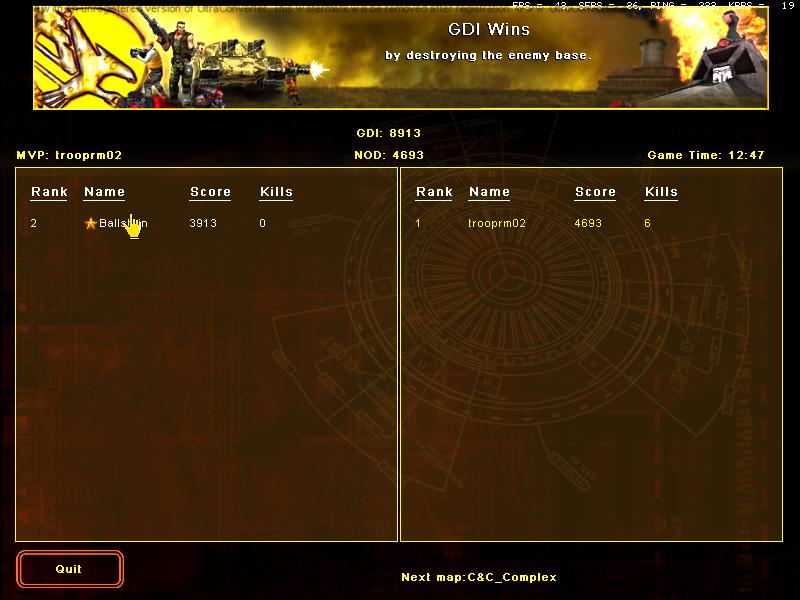 The 2nd game I was nod this time and I ended up killing his engi with mine and started running towards his base. He got an apc so I ended up just killing myself. I got a tech and hid in the hand and waited for him to come to my base. He got out at strip so I jumped in his apc and took out his wf. This last game wasn't really supposed to happen, he did say before that it would be only one game, but we started playing this one. Once I took out the wf, we ended it there.
