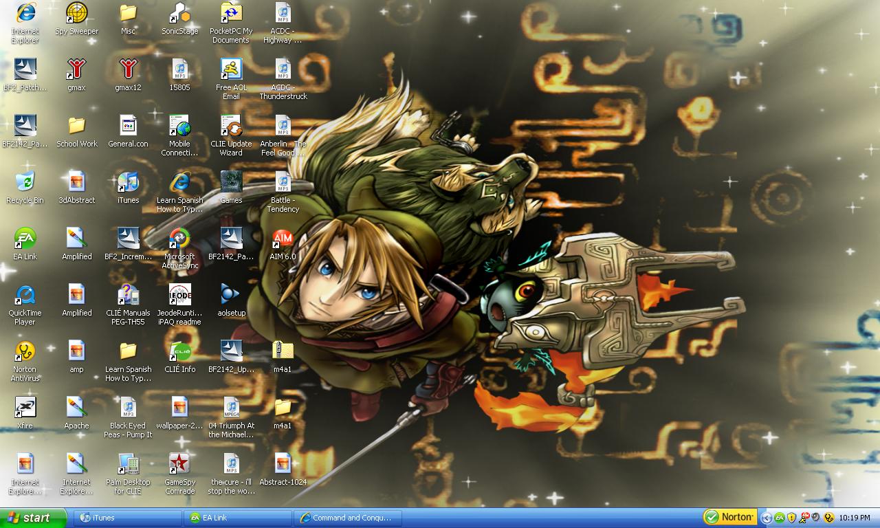Anyway heres my other one. Its simple and i hate hate hate icons all over my screen. I use the shortcut thingy on my toolbar. Thing in upper right corner is my windows media player its always on.