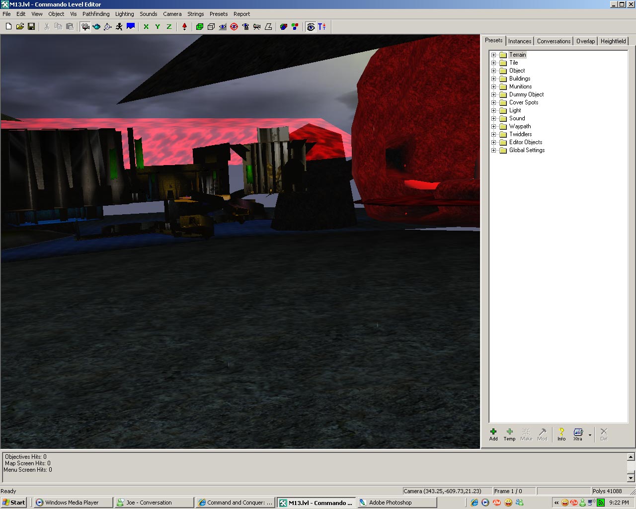 This one is actually multiplayer gdi vs nod. Nod is trying to release these forces upon the world. GDI suppose to stop them by helping this new "draconic" race. But, because I'm a challenging person, I made the new race set as "mutant" so it's hostile to both GDI and Nod. Technically, this map is huge enough that I could turn it into multiple DMs and tournament maps for infantry... who knows... maybe I'll finish it sometime in my lifetime... haha! ;P