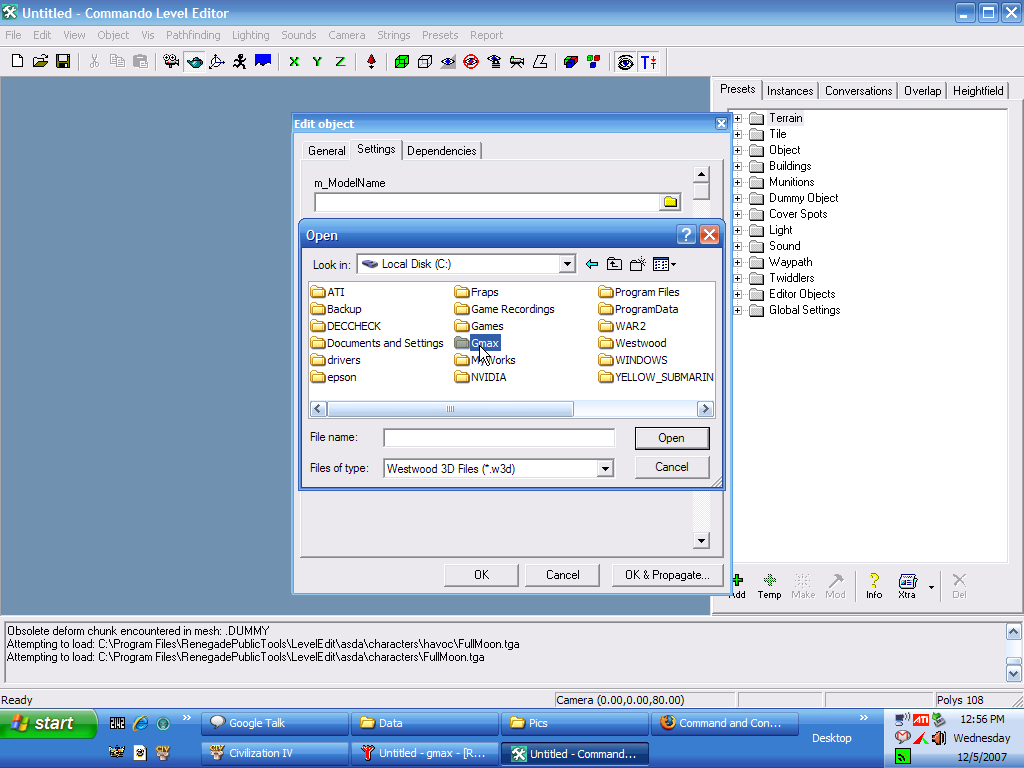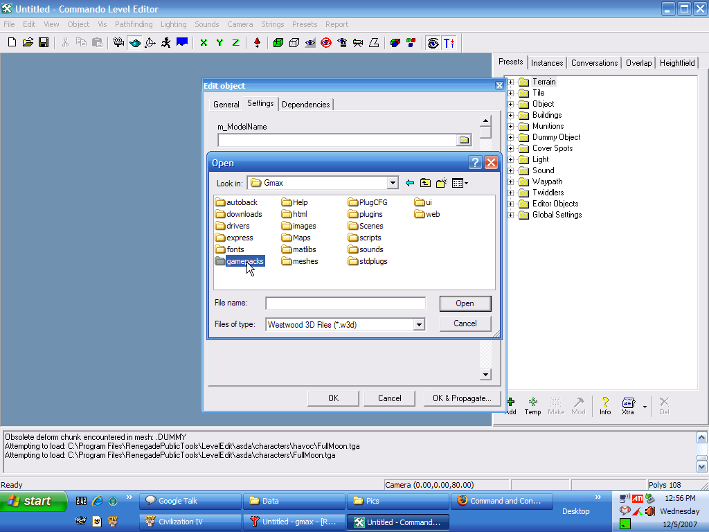 The First decade was released long after the original Renegade, EA decided to change the paths so Level Edit is trying to get files from the wrong location.