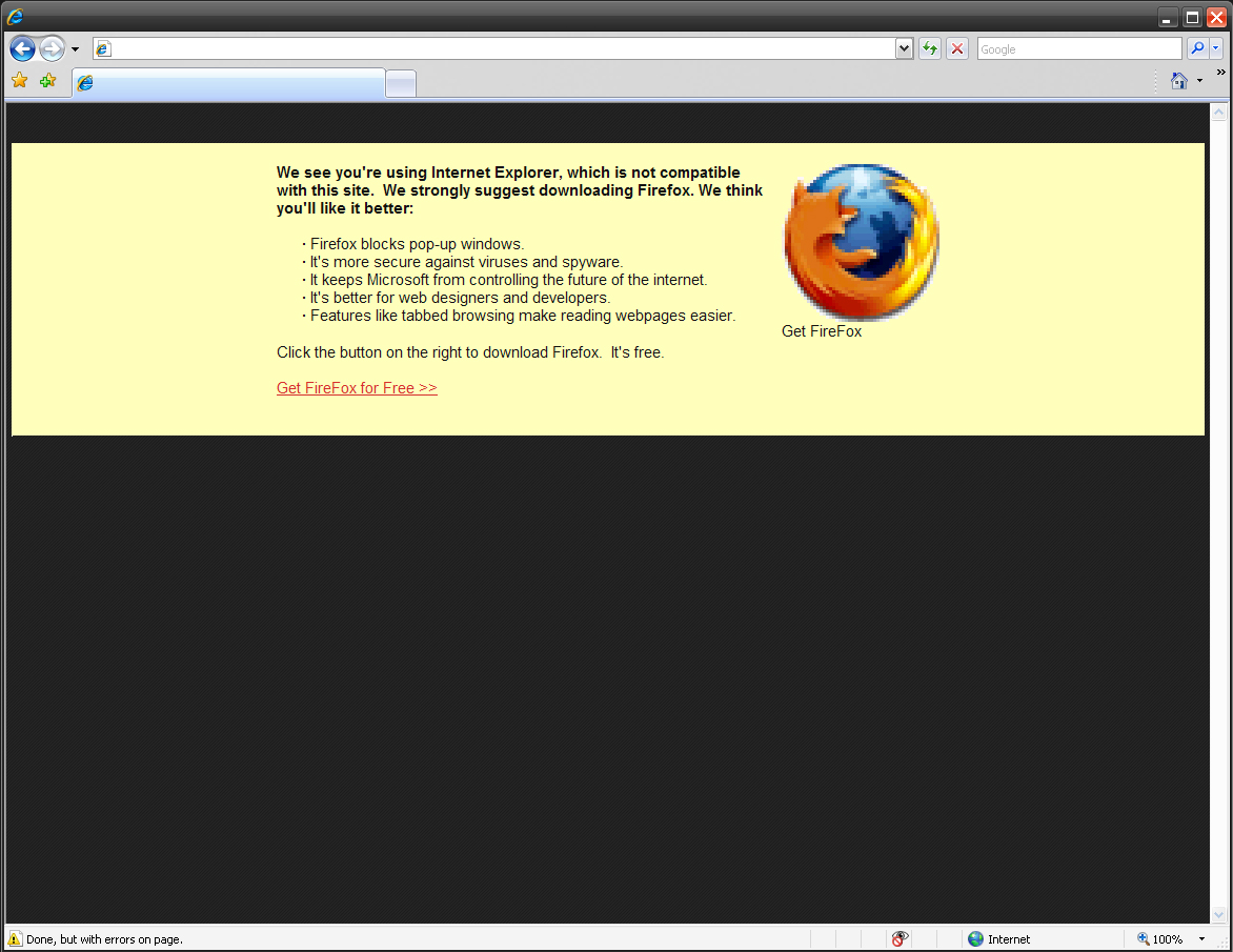 EDIT: I see there you use IE7. Quick question, where's the Menu bar... How would I configure my browser settings, or organize my favorites, or open a new window, or view my history. Defaulting the menu bar as hidden... Clever. Bravo Microsoft.
