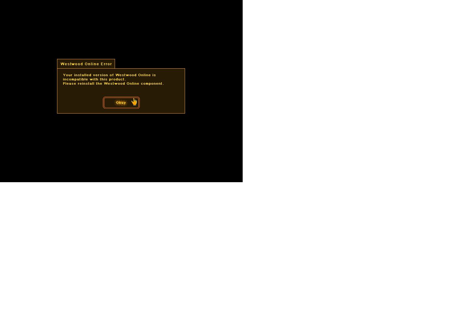 When I go online, I get a message "incompatible version of Westwood Online (WOL)