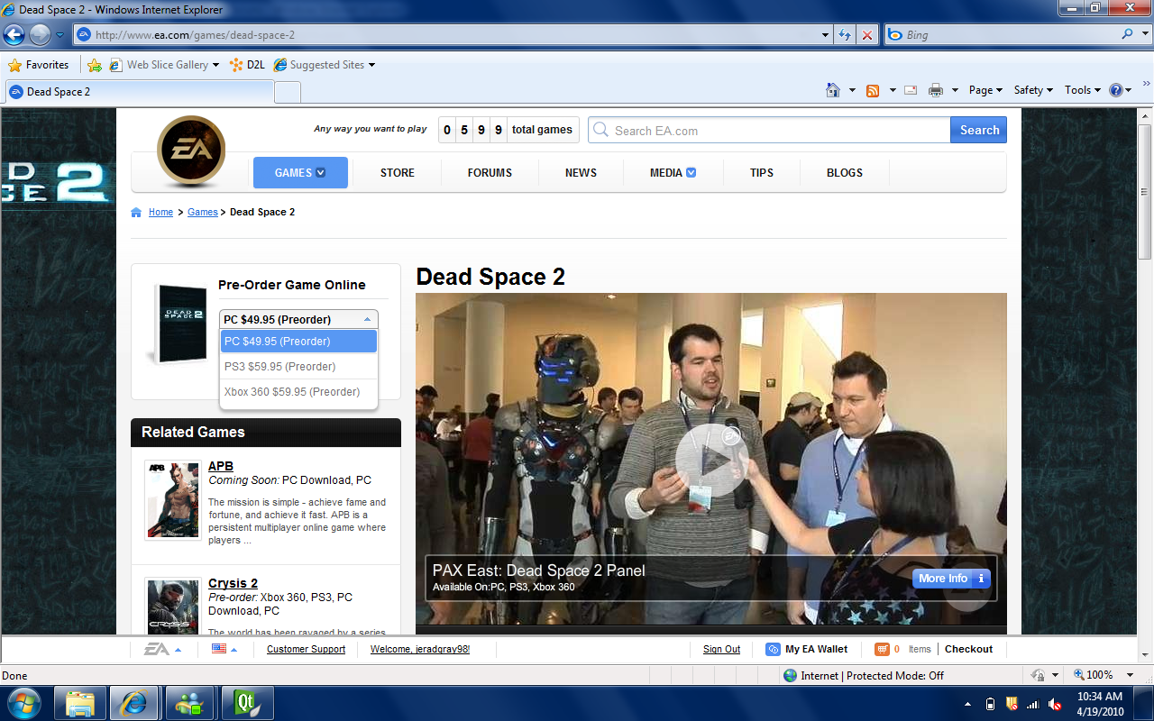 (I preordered the game from gamestop months ago, so if they fuck me over at this point they'll never hear the end of it, plus that article is obviously out of date, either that or else EA even fails at keeping their website up-dated, because DeadSpace2 for PC is still a preorder option.