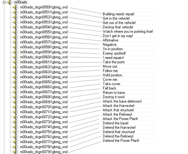 I'm planning on creating new radio commands, but I don't know the names of the files to change. Anyone got a list of them, or even a link to a sound pack where it changes the commands?