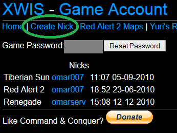 Registering a nick on XWIS for Renegade and other C&C games is very easy. All you need to do is set up a Game Account at XWIS.