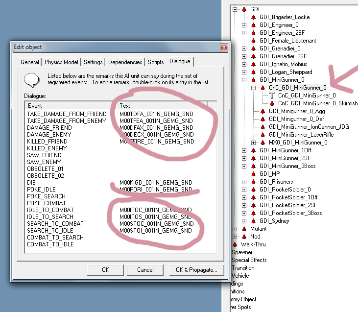 While importing the standard presets to Leveledit I saw, that the GDI CnC Minnigunner Preset has a bug: there are a bunch of Dialogs on it.