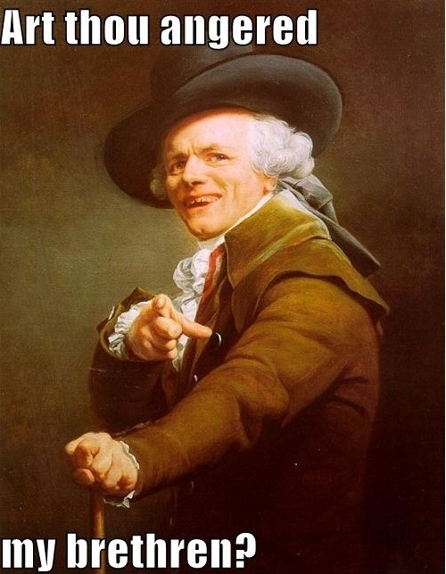 Actually not at all. I've had a smile on my face ever since I got home and heard all my fans gathered to one topic to pay their respects. To be honest, I've been rather happy as of late. Got a lot of awesome things going on. Life is starting to look up a bit. It would take a pretty sad person to get mad about the interwebz. Also I think it's painfully funny that I have my very own thread here on these forums when I've only made like 9 or 10 posts in total,honestly I think that's pretty cool.