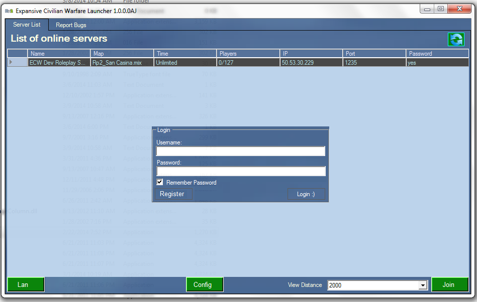 -To play Single Player LAN the GameXXXX.exe files are the different view distances (they are hidden; the plan was for the client to have a launch offline button but has not been added yet.