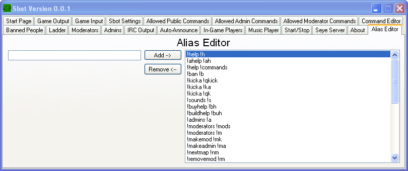 Alias editor finished. The syntax for it is as follows: