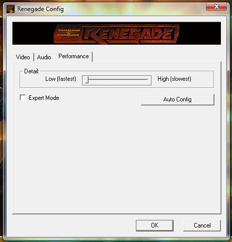 Also, change the resolution to 800 X 600 on the first page. That might help. The trouble is that Renegade eats lots of CPU.