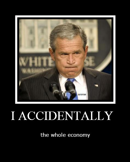 Edit: For what it's worth, I don't think it's prudent to assign blame on a political basis for this crisis. Much of what happened was caused due to market manipulations stretching back years, upon years. Oil prices and the sub-prime lending fiasco were just the straws that broke the camel's back.