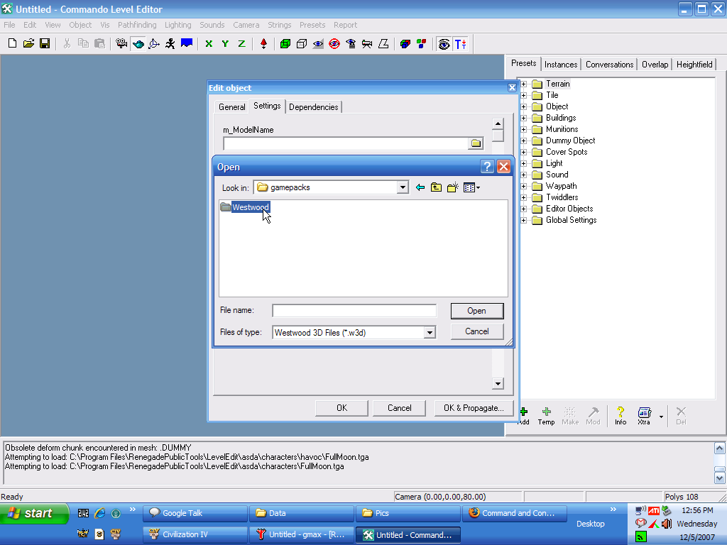 The First decade was released long after the original Renegade, EA decided to change the paths so Level Edit is trying to get files from the wrong location.