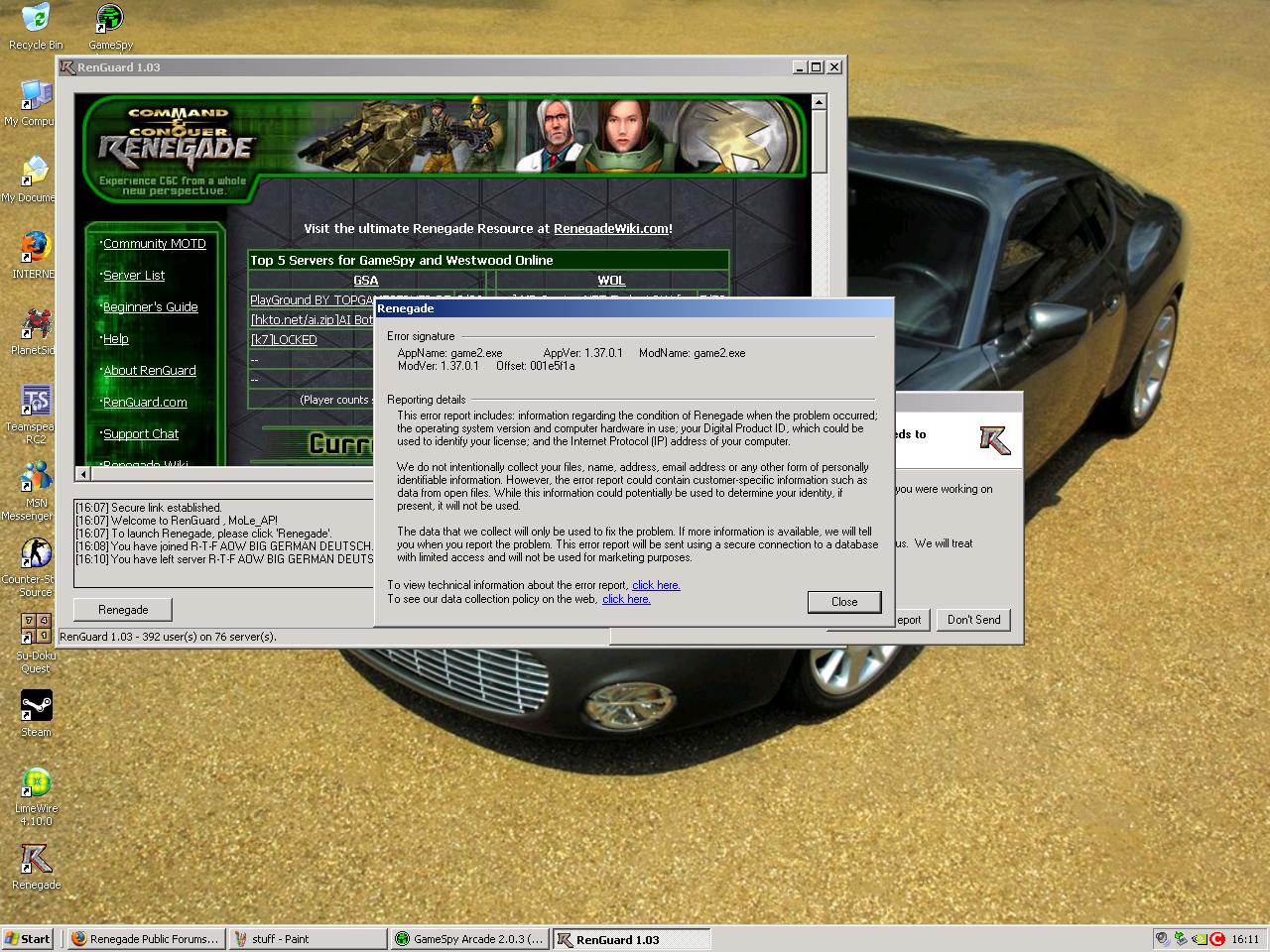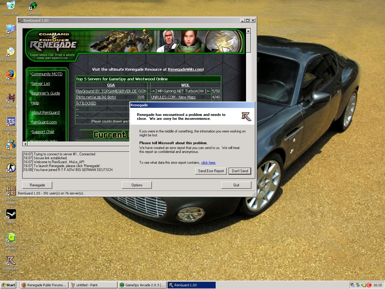 RIGHT IV TRIED THE SPYBOT AND THAT FOUND STUFF AND I USE ANTI VIRUS AND THAT DINT FIND NOTHIG BUT IT STILL DOES THE SAME THING AFTER THAT opps sorry for caps also i reinstalled rena a wekk ago thast when the prob started coz i formated my pc coz it was full of shit so i done all that installed all the patches how they should be done rena then rena patch then renguard and core patch 1 but it didnt work so need new ideas. thx for your ehelp so far hope u can think of something