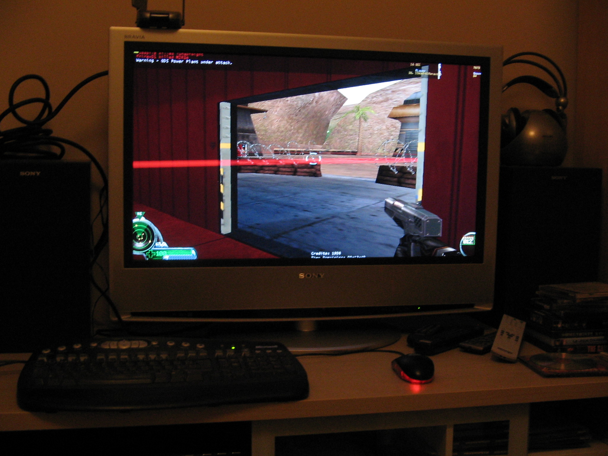 Anyway, I still need to buy one of those Dvi to HDMI cable to get the stuff on the TV. The cost is a bit high: 92 Euros (like 100 dollars for one) And I need to save a bit my money this month for other stuff, Once I get the money next month I will post screenshots with some game tests on that huge 'computer screen'.