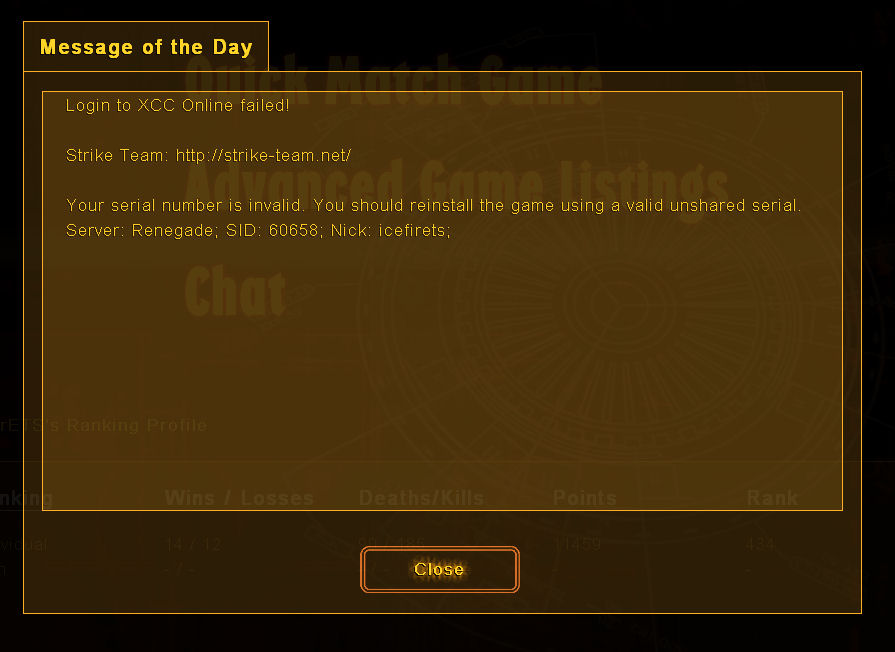 Tried logging on using the ingame menu, but it came up with "invalid serial" error.