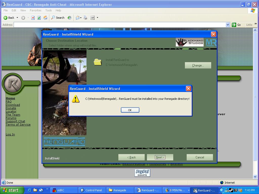 I couldnt unsitall it beause of an error, i cnt remember the error (what it said) anyway i got round to uninstalling renguard and now im trying to reinstall it now i cant. Heres a screen shot of the problem