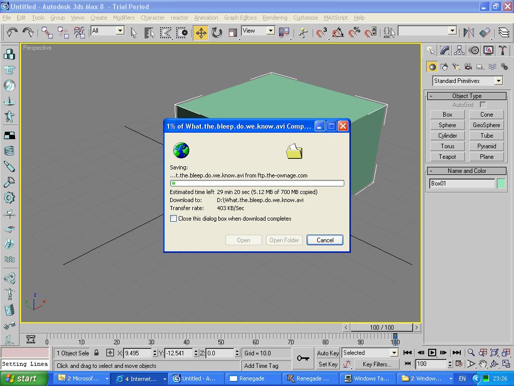 i have a 70 GB hard drive to myself, broadband, and alot of free time im downloading it to watch a bit later.