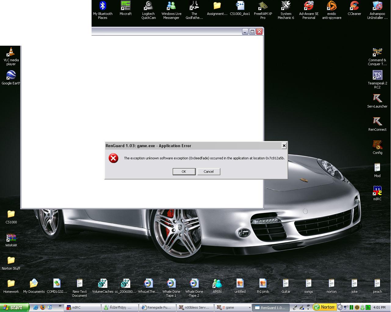 have also discovered that it is not the fact that I'm using First Decade. i reinstalled the regular Renegade, and still no luck. Same errors. Patched it, no luck.