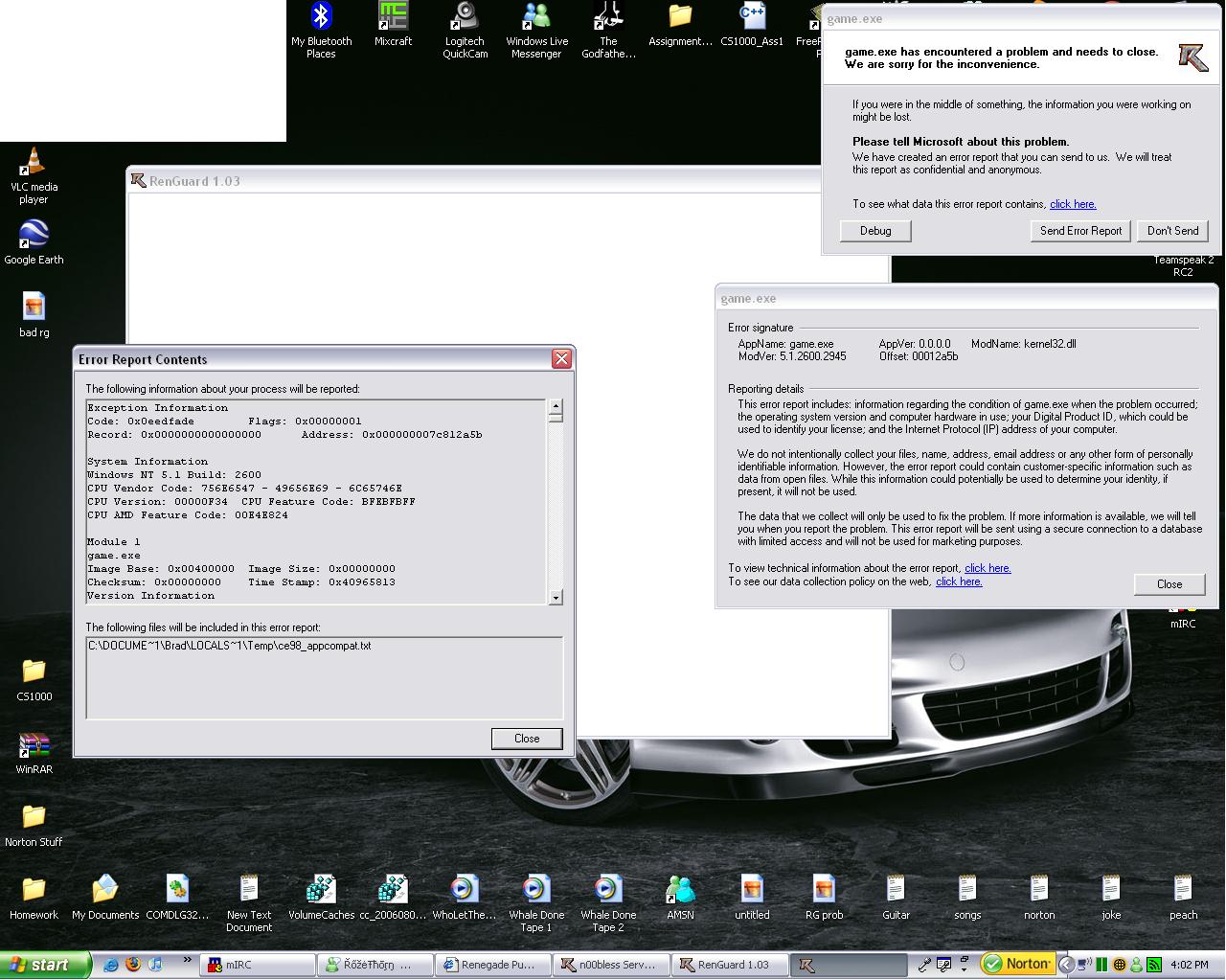 Here are two pics of what happens when i attempt to start RG.