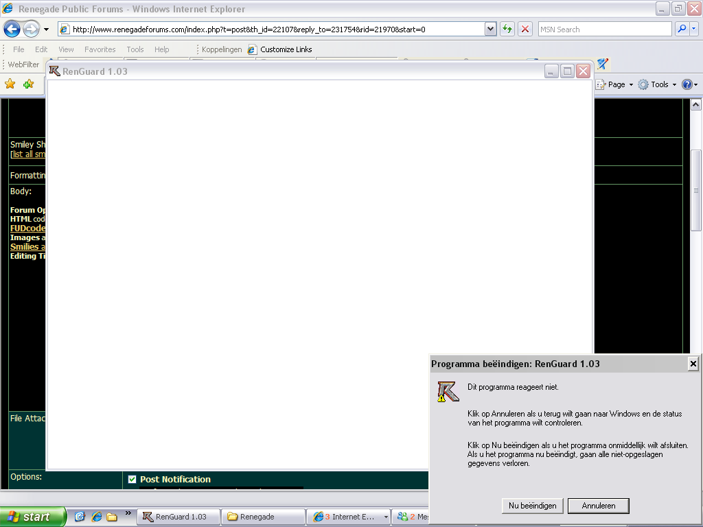 Re: Renguard Crash or something. [message #237300 is a reply to message #237299] Thu, 04 January 2007 17:15 Go to previous messageGo to next message