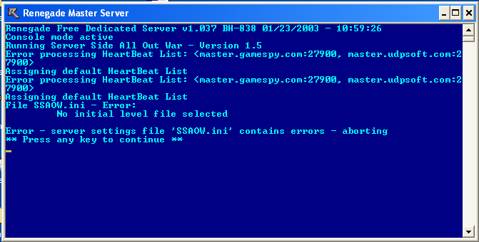 Thanks I think that I have taken care of that problem, I simply instalded a Renegade FDS. Im guessing that FDS stands for Free Dedicated Server?