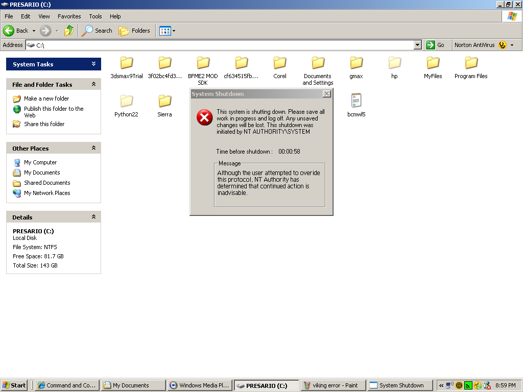 And my computer is back up, this one on the other hand appears to have the same virus on it. I wonder where my new computer got it from. Sarcasm