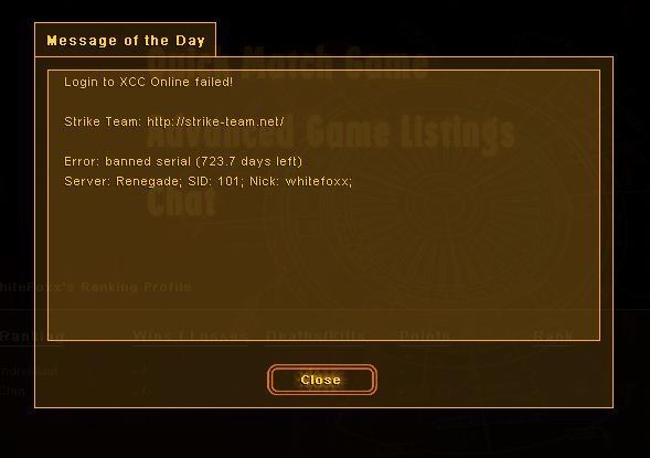 Err your serial got XWIS banned. Unless it's not your serial, you should know why that happened.