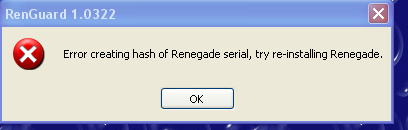 The strange thing is a few days ago when I was updating my renguard on my laptop from 1.03 to 1.0322, nothing was wrong and I was able to play right after. Today I install a fresh new copy of TFD to my desktop and then upgrade to 1.02 TFD and afterwards the renguard 1.0322. And this problem came up.