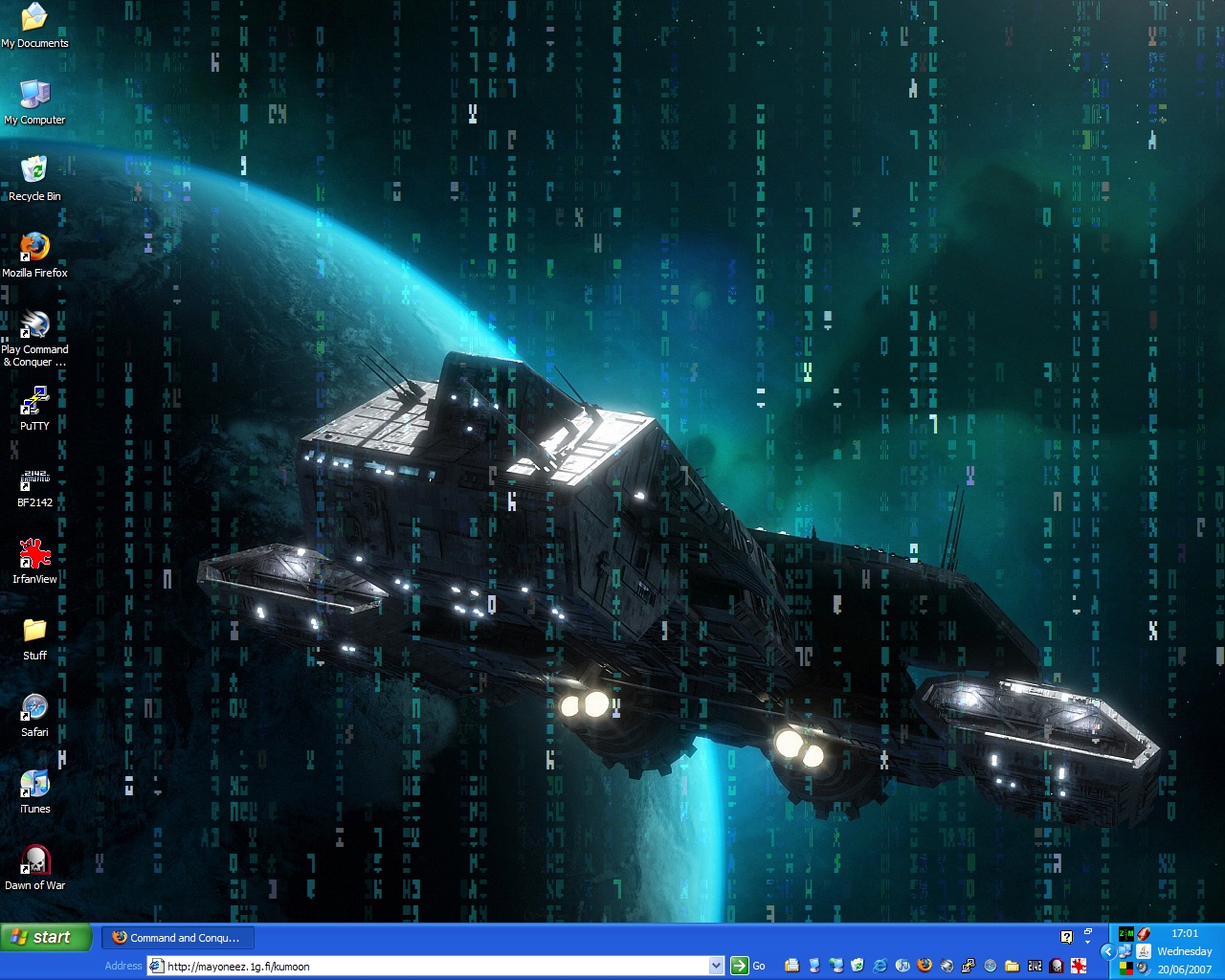 This is the coolest desktop add-on doo-dad thing ever! Try it out! It makes your background animated with matrix symbols. The coolest part is it will still show your old background through it! You can also change the colors and settings- check it out and download it here. http://zmatrix.sourceforge.net/index.html#Download