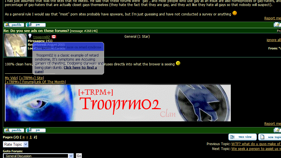 2. Your buddy (you apparently know who it is) made a post saying this forum has ads, said it was "gay", and even provided a screenshot of one of the ads.