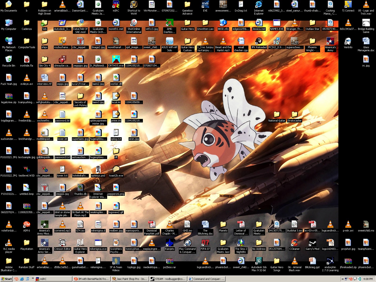 Well, I'm on my 16" miscoulored monitor that I usually use as a secondary because myu 19" primary quit on me. So, here is my lower res than usual desktop: