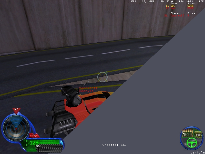 Doing well, and able to sneak by the GDI mediums that were spamming rounds to find us. We were about to cross the threshold to the base and take down the agt, when suddenly my screen flashes and I am now in a red health stealth that is trying to drive over a GDI Medium who is crashed into the barn.