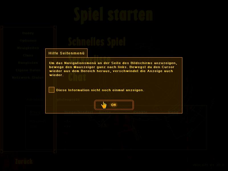 Maybe this will help. These are the exact steps i take when opening renegade. Maybe somebody who speaks German could help?