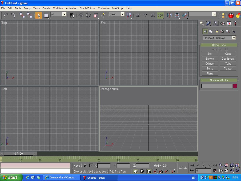 There are 2 SS's of what my RenX and GMAX look like below after loading...is there any setup further required of the 2 programs or am i good to go to the next phase(e.g Attempting to make basic terrain and texturising them?)