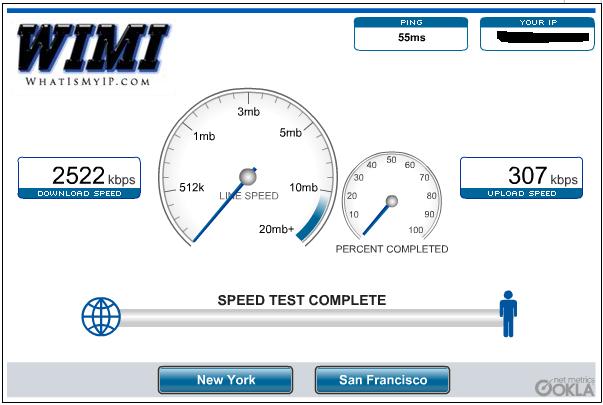Same here, NY speed is lower. Probably because of information transaction speed. That test is SF