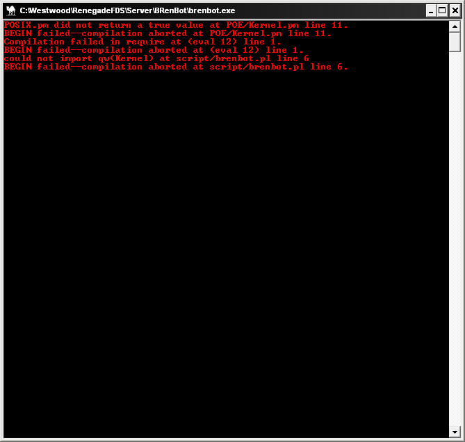 Alright, I've been using BR 1.50 for a long time and decided to upgrade. When I 'upgraded', all traces of BR 1.5 out of my renfds folder. Basically I removed the BR folder and the .dll and ini. I downloaded the full BR1.52 installer of off 'http://new.brenbot.com/'. Since I installed BR 1.52, I get this start-up error that I have no clue how to fix.