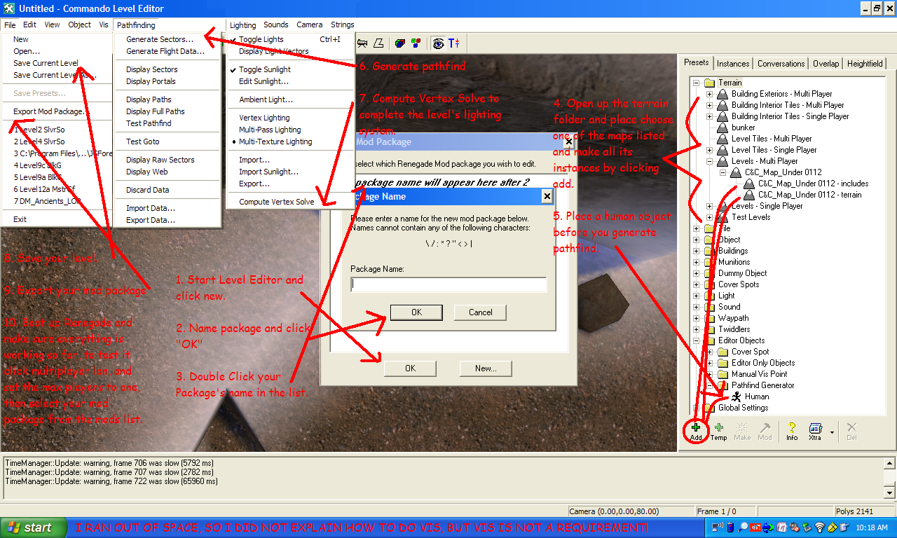 First though, a bit about me. I am a big CnC fan, especially of the Tiberian Series, including Renegade of course. I make small little maps\mods for me and my brothers' enjoyment. I have made a botfighting map, a beta co op map, and am working on a crazy vehicle mod. Nothing fancy, just heightfield maps with temped presets for a specific purpose. Not worthy of these forums on other words. Whats That