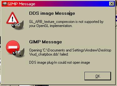 | u6795 wrote on Wed, 19 November 2008 16:41 | It means you don't have the GIMP plugin required to open .dds files. Basically it has no idea what the fuck is going on and had an anxiety attack.