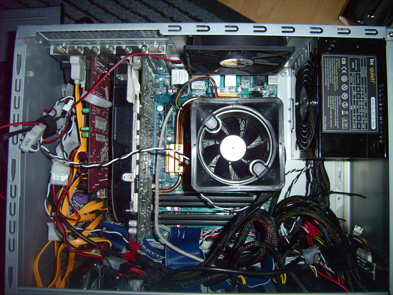 I also wanted a case with a window but the case costed like 89 dollars so I was just thinking to leave it out like so. Anyway....I wish the cables on the power supply and the ide cables were longer the y are to short so they don't all fit tagether nicely.