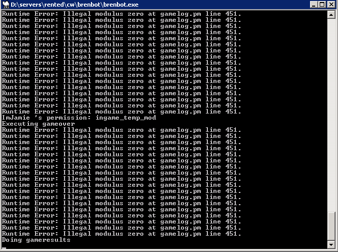 | Brenbot 1.52 issues illegal modulus gamelog.pm [message #396122] |