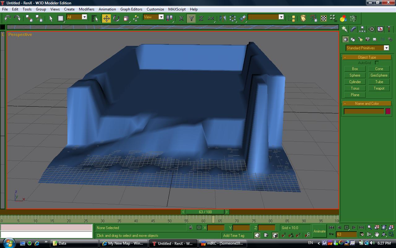 4: That is NOT how you do water. What you want to do is make the island first, make a little bit of a sea floor, then extrude off of the island (preferably all on the same Z coordinate unless you want your water to look stupid), then detach said extrusions and turn that into the water. It'd be a good idea to add in some alpha blending near the shores too, so you'll definitely need to extrude for that part.