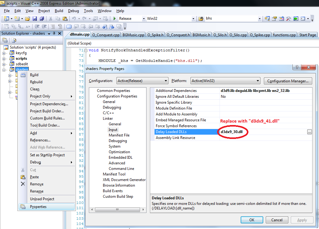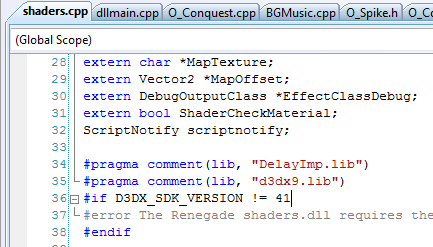 shaders.cpp(37) : fatal error C1189: #error : The Renegade shaders.dll requires the DirectX August 2006 SDK installed in order to produce a proper executable. If you wish to use a different version of the SDK, modify the delay load dll in linker settings to point to the newer d3dx.dll