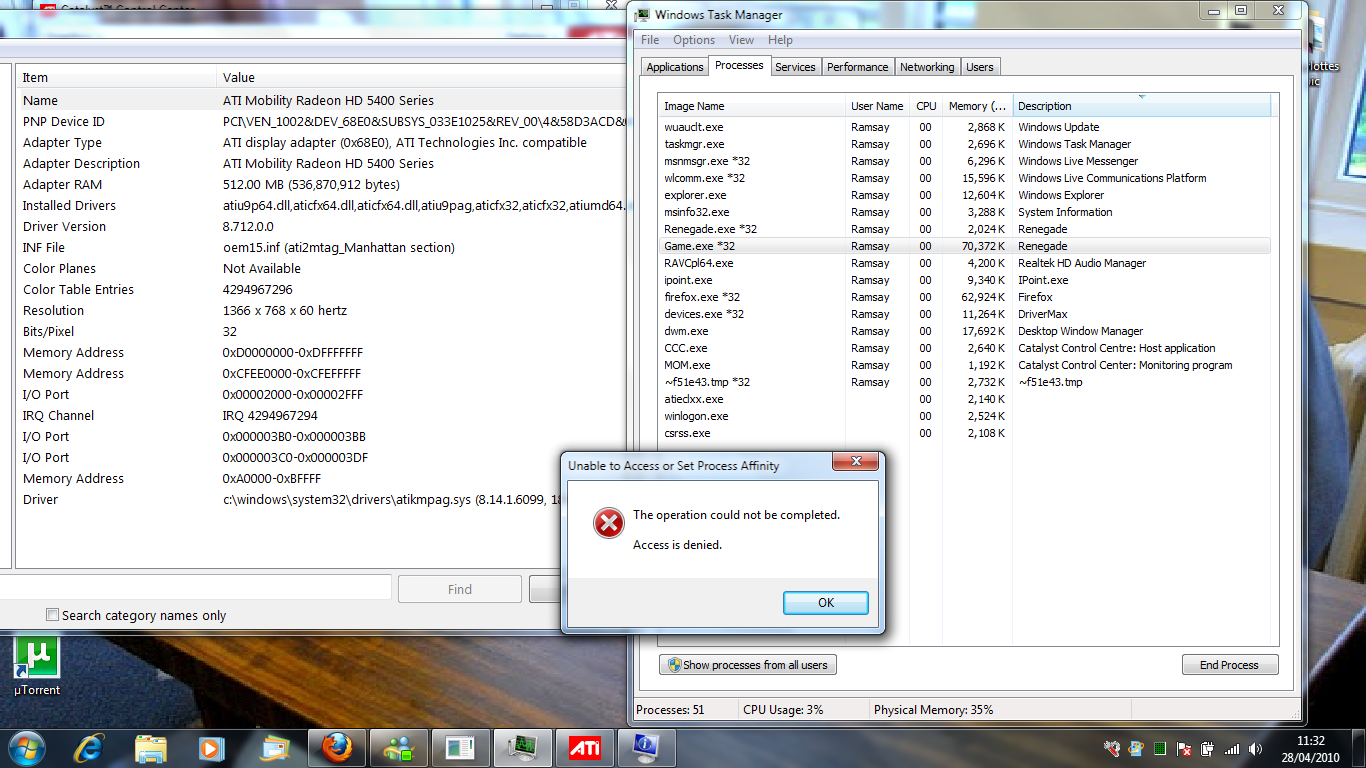 I am running windows 7 64 bit. On a laptop Acer Aspire 5740G