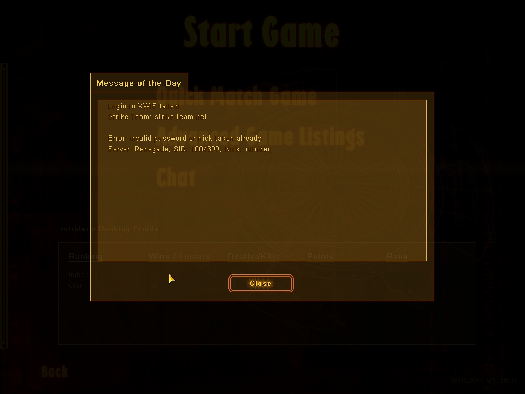 Home » Technical Support » Renegade Client » No games, no servers, can't even register...