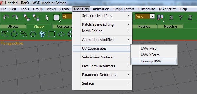 (when i attempted it in RenX, I never saw the UNWRAP UVW modifier, only reason Im saying this)