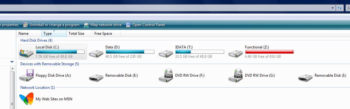 Can you post some screenshots of the explorer with all the drives listed? Here's how mine looks: