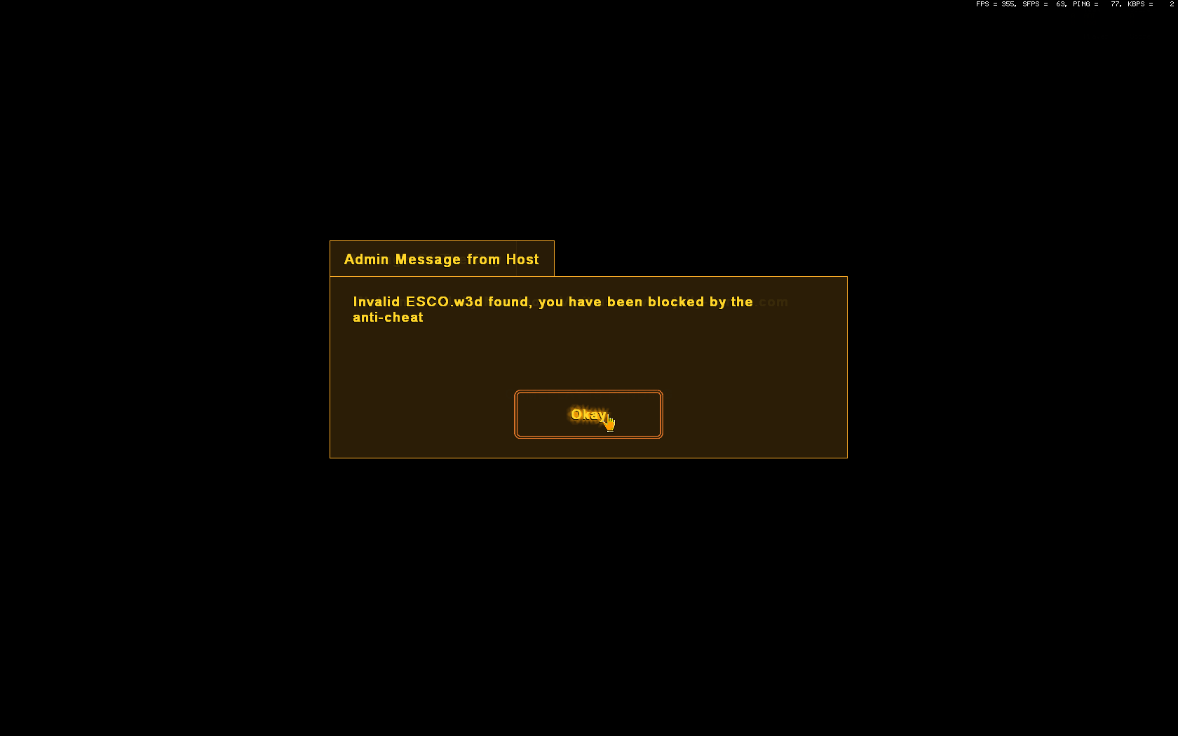 Home » Tiberian Technologies / Blackhand Studios » Tiberian Technologies Forum » Anti-cheat block message; invalid ESCO.w3d file found